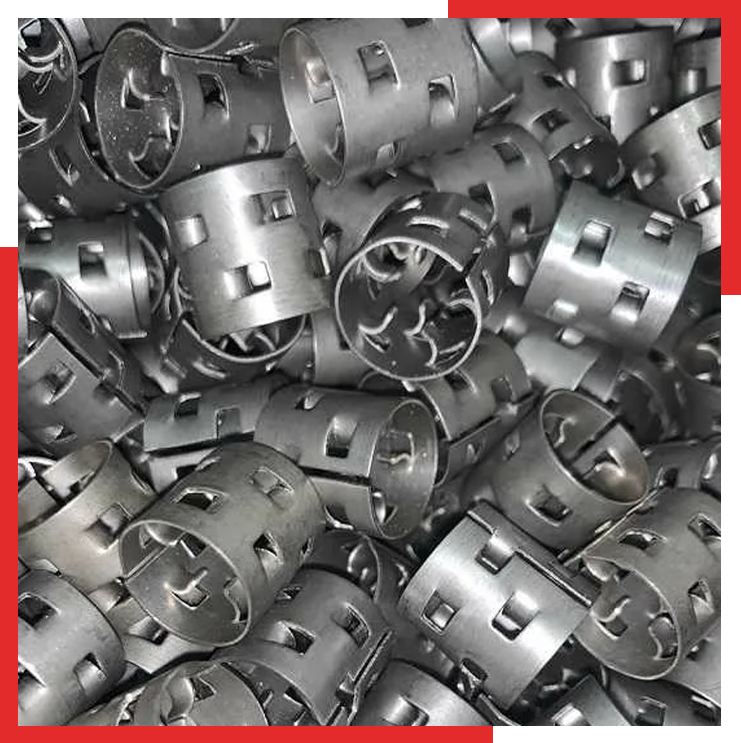 Pall Rings are a highly efficient type of random packing used in industrial processes for mass and heat transfer applications. Made from materials like stainless steel, plastic, or ceramics, Pall Rings feature an open-cylinder design with internal and external ribs, maximizing surface area and enhancing fluid and gas distribution. This innovative structure minimizes pressure drop while improving efficiency in applications such as distillation, absorption, and stripping.